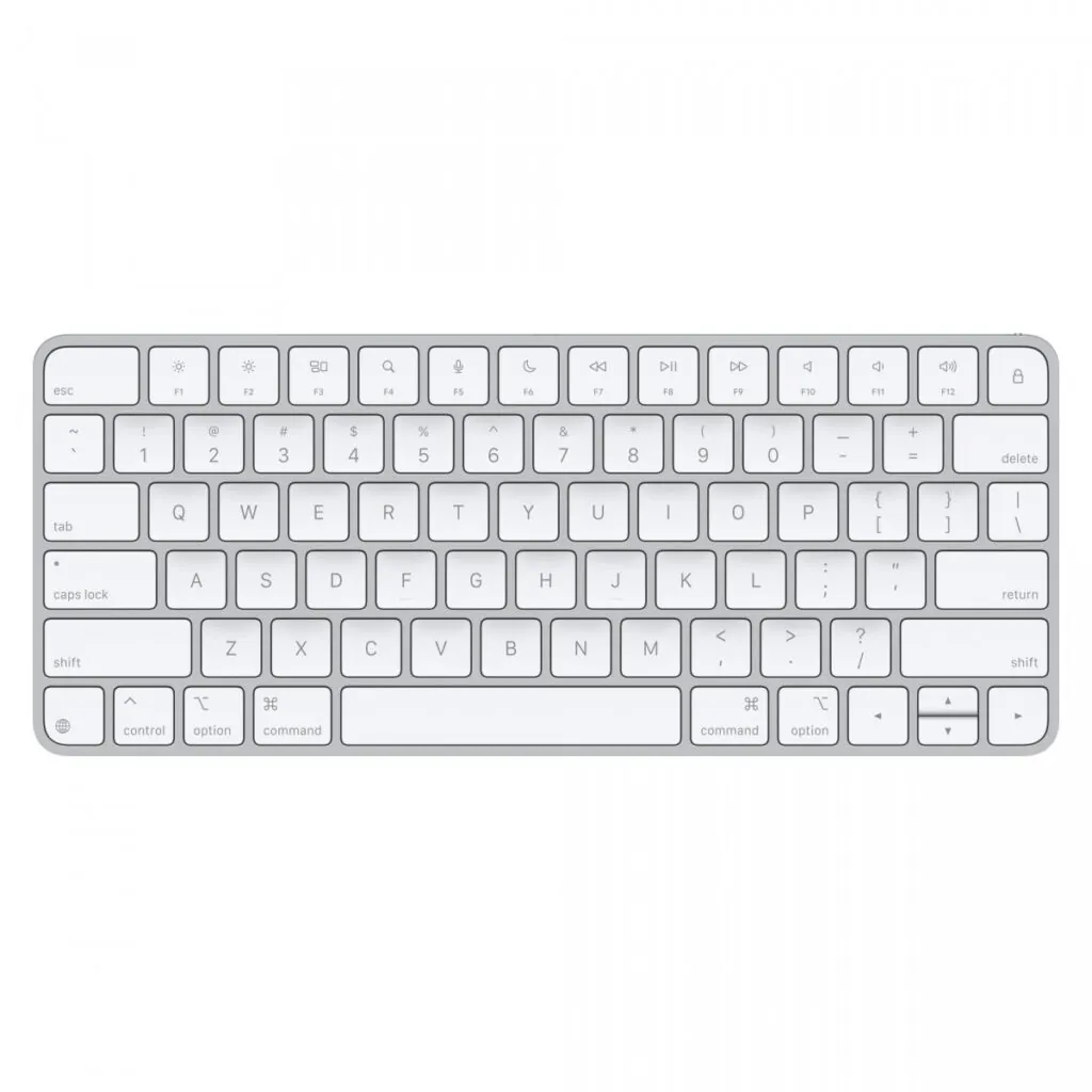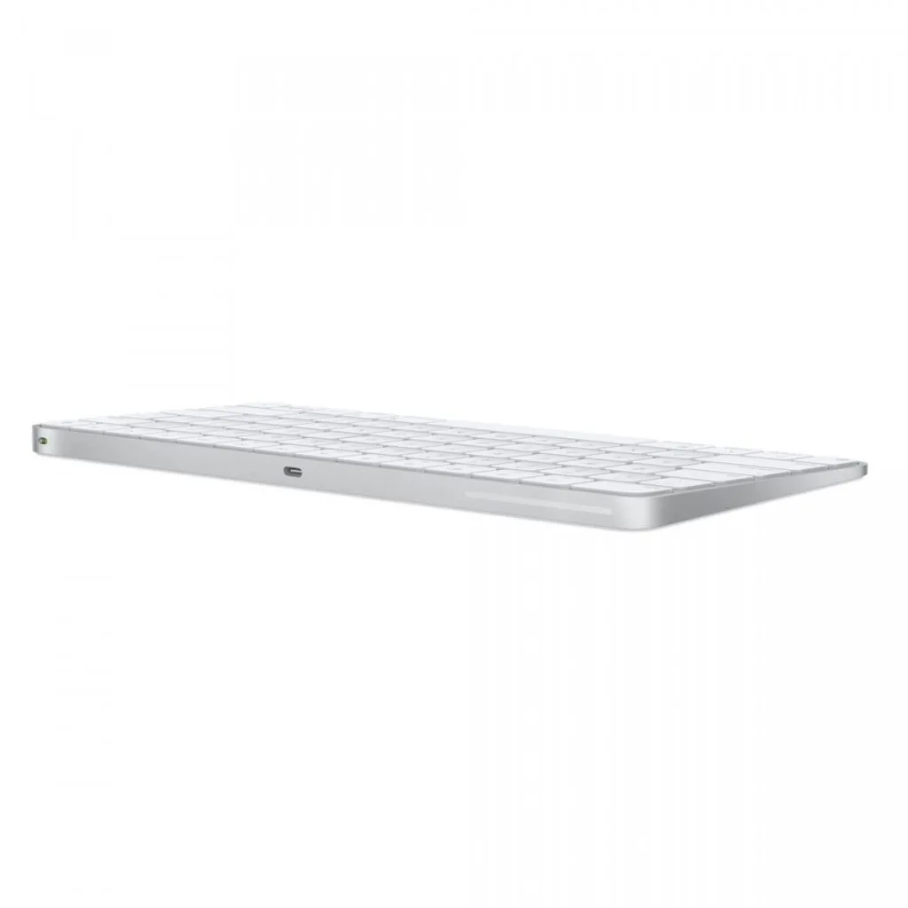 • Pełnowymiarowa klawiatura: Klawiatura Magic Keyboard oferuje pełnowymiarowy układ z cichymi i precyzyjnymi klawiszami, co zapewnia komfortowe pisanie bez względu na czas pracy.